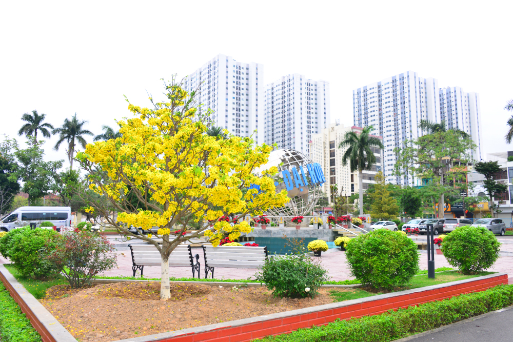 Rặng hoa Hồng bên Khu liên hợp thể thao Hàng hải khoe sắc rực rỡ, tỏa hương dịu nhẹ, tạo điểm nhấn mềm mại giữa không gian năng động