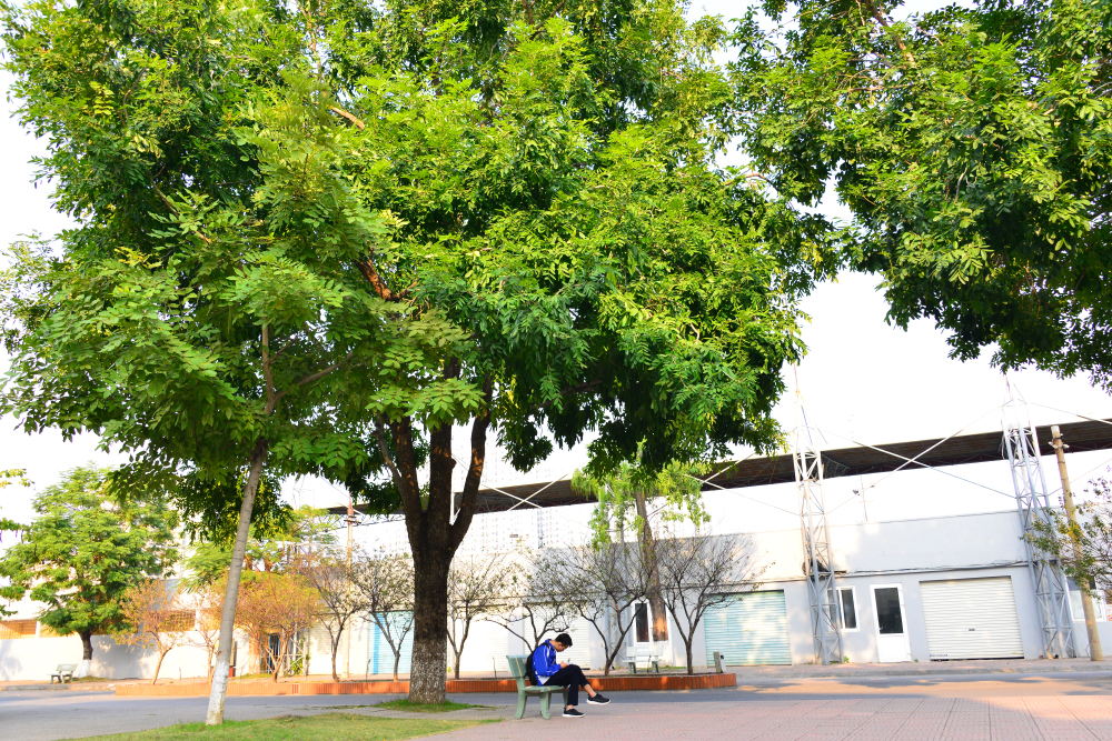 Sinh viên học tập, nghỉ ngơi dưới tán cây xanh, tận hưởng không gian trong lành, yên bình giữa khuôn viên Trường