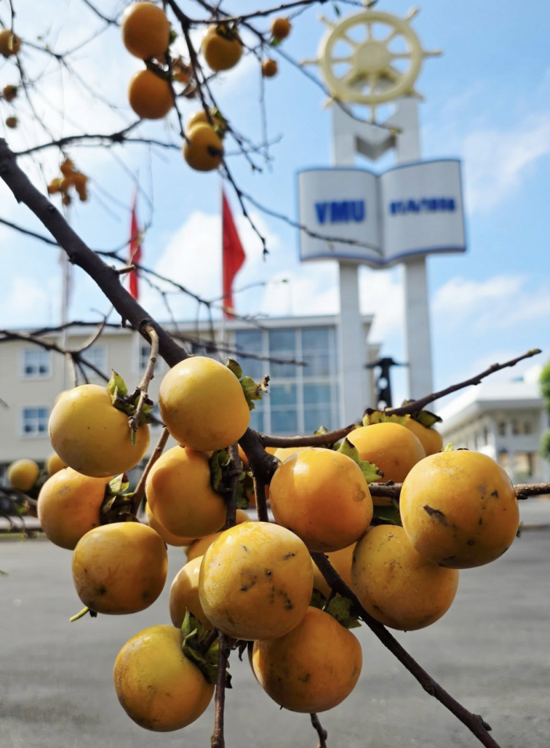 Cây Hồng trứng đơm hoa kết trái thu hút nhiều khách yêu cây dừng chân, chiêm ngưỡng và lưu giữ những khoảnh khắc đẹp trong khuôn viên Trường