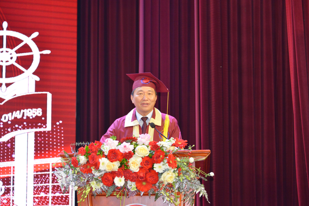 Nhân dịp này, Thầy Hiệu trưởng cũng gửi lời tri ân sâu sắc tới đội ngũ cán bộ, giảng viên, các nhà khoa học đã tận tâm đồng hành, hướng dẫn và hỗ trợ tân tiến sĩ, tân thạc sĩ trong suốt quá trình học tập, nghiên cứu; cảm ơn các cơ quan, doanh nghiệp đã luôn hợp tác chặt chẽ với Nhà trường; và đặc biệt là sự tin tưởng, đồng hành của gia đình các tân tiến sĩ, tân thạc sĩ. Thầy khẳng định, ở bất kỳ cương vị nào, Nhà trường luôn rộng mở chào đón các cựu học viên sau đại học trở về với Mái trường Đại dương thân yêu - ngôi nhà thứ hai của mỗi chúng ta. Chính nhiệt huyết, đam mê và sáng tạo của các thế hệ học viên đã góp phần làm nên những giá trị cốt lõi bền vững của Nhà trường: “Trí tuệ - Sáng tạo - Trách nhiệm - Nhân văn”.