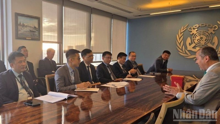 Đoàn Đại biểu cấp cao Việt Nam đã có buổi làm việc với Tổng Thư ký IMO Arsenio Dominguez (Nguồn: Báo Nhân dân)