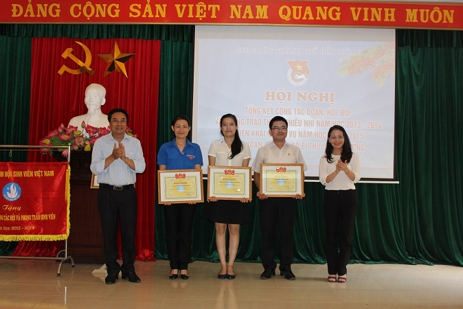 Nhằm kịp thời động viên, biểu dương các tập thể, cá nhân có thành tích xuất sắc trong năm học qua, Trung ương Đoàn quyết định khen thưởng 08 tập thể có thành tích xuất sắc trong công tác Đoàn, Đội và phong trào thanh thiếu nhi năm học 2013 – 2014; Trung ương Hội Sinh viên Việt Nam khen thưởng 03 tập thể đã có thành tích xuất sắc trong công tác Hội và phong trào sinh viên năm học 2013 – 2014; Thành đoàn Hải Phòng tặng cờ cho 05 đơn vị dẫn đầu công tác Đoàn, Đội và phong trào thanh thiếu nhi thành phố năm học 2013 – 2014; Hội đồng Đội thành phố tặng cờ cho 05 liên đội đạt thành tích xuất sắc trong công tác Đội và phong trào thiếu nhi thành phố năm học 2013 - 2014.