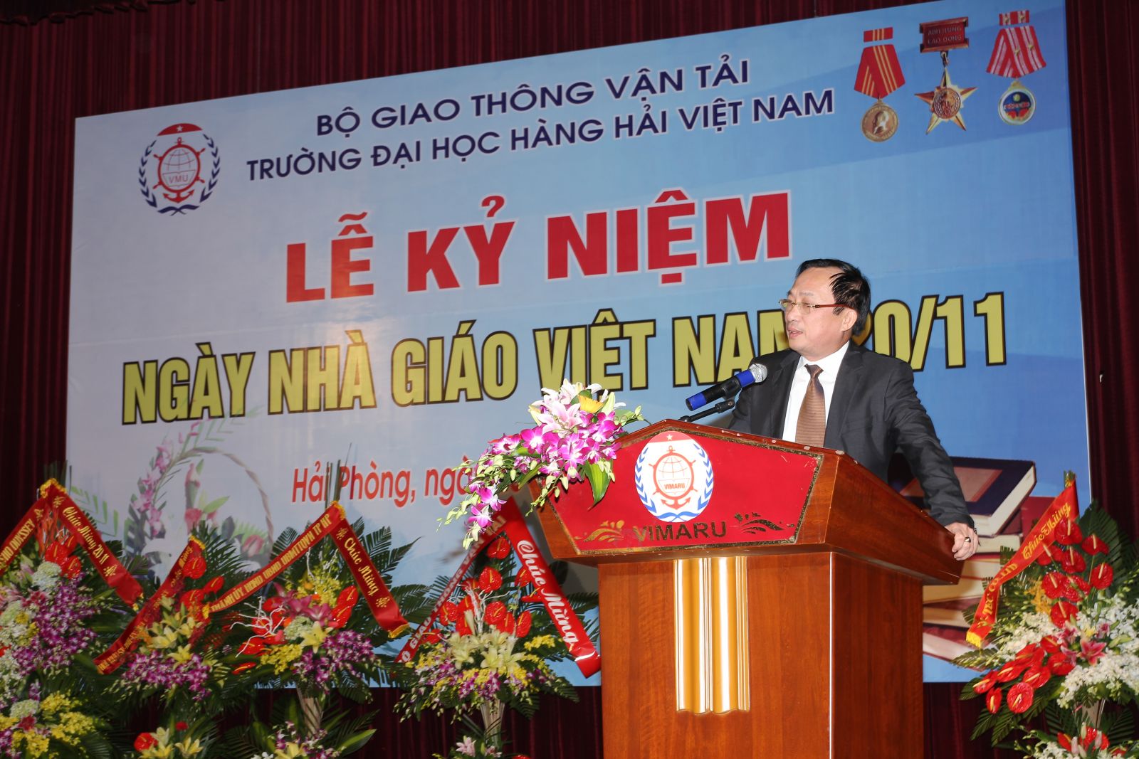 Phát biểu tại buổi lễ, Đồng chí Nguyễn Văn Thành- Chủ tịch Hội đồng nhân dân TP Hải Phòng chúc mừng và biểu dương những thành tích Nhà trường đạt được trong thời gian qua. Đặc biệt chúc mừng các đồng chí vinh dự nhận danh hiệu, bằng khen của chính phủ và Bộ GTVT, ghi nhận thành tích của 5 tập thể được nhận giải thưởng nghiên cứu khoa học Neptune của Trường, qua đó khẳng định quá trình đào tạo của Nhà trường gắn liền với công tác nghiên cứu khoa học. Bí thư Thành ủy nhấn mạnh, trong quá trình hội nhập và phát triển, Nhà trường có đóng góp tích cực trong đào tạo cung cấp nguồn nhân lực kinh tế biển cho Thành phố và đất nước. Đây cũng là một trong những tiền đề để Nhà trường thực hiện mục tiêu đào tạo theo tinh thần kết luận số 72 của Bộ Chính trị, phấn đấu trước năm 2020 Hải Phòng trở thành thành phố cảng xanh, văn minh, hiện đại.