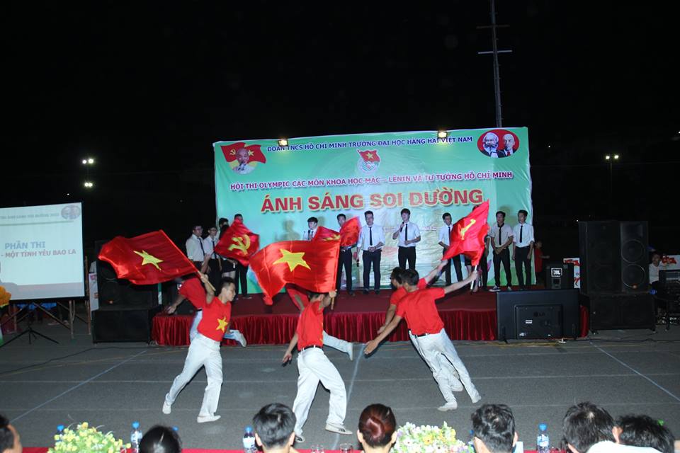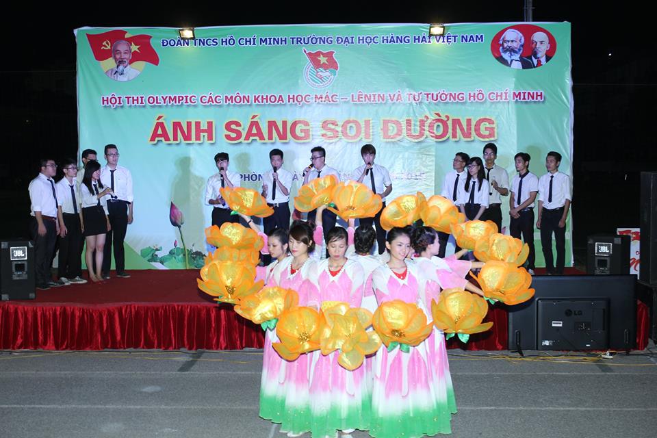 Thực hiện kế hoạch công tác Đoàn và phong trào thanh niên năm học 2014-2015; thiết thực chào mừng kỷ niệm 125 năm ngày sinh của Chủ tịch Hồ Chí Minh (19/5/1890 – 19/5/2015) và 40 năm ngày Giải phóng hoàn toàn miền Nam thống nhất đất nước (30/4/1975 – 30/4/2015); Thực hiện chỉ đạo của Trung ương Đoàn TNCS Hồ Chí Minh và Thành đoàn Hải Phòng về việc tổ chức Hội thi Olympic các môn khoa học Mác – Lênin và tư tưởng Hồ Chí Minh “Ánh sáng soi đường” năm 2015; Được sự đồng ý của Đảng ủy - Ban Giám hiệu Nhà trường, tối ngày 25/5/2015, tại sân vận động trường Đại học Hàng hải Việt Nam, Đoàn TNCS Hồ Chí Minh Nhà trường phối hợp cùng với khoa Lý luận chính trị tổ chức vòng chung kết cấp trường Hội thi Olympic các môn khoa học Mác - Lênin và tư tưởng Hồ Chí Minh. Hội thi là diễn đàn của đoàn viên sinh viên Nhà trường nhằm thiết thực triển khai cuộc vận động Học tập và làm theo tấm gương đạo đức Hồ Chí Minh, cổ vũ lối sống đẹp, trách nhiệm với gia đình và xã hội, góp phần bồi dưỡng lý tưởng, nhận thức chính trị cho đoàn viên sinh viên Nhà trường, Hội thi cũng là hoạt động thiết thực hưởng ứng phong trào “Sinh viên 5 tốt”, góp phần xây dựng phong cách sinh viên Đại học Hàng hải Việt Nam, là hoạt động thiết thực trong việc xây dựng môi trường giáo dục thân thiện lành mạnh.