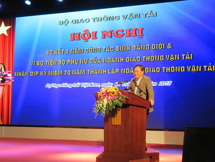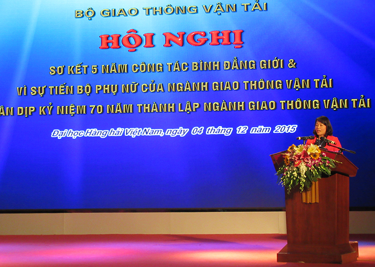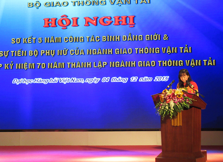 Thực hiện kế hoạch hành động số 2007/BGTVT-TCCB ngày 07/4/2011 của Bộ Giao thông vận tải về BĐG và VSTBPN ngành GTVT, chương trình công tác của Ban VSTBPN Bộ Giao thông vận tải số 4701/Ctr-VSTBPN ngày 15/4/2015, được sự đồng ý của Ban Cán sự đảng Bộ GTVT, Bộ trưởng Bộ GTVT, 08h30 ngày 04/12/2015, tại Hội trường lớn Trường Đại học Hàng hải Việt Nam, Ban VSTBPN Bộ GTVT đã tổ chức Hội nghị “Sơ kết 5 năm công tác BĐG và VSTBPN của ngành GTVT” nhân dịp kỷ niệm 70 năm thành lập ngành GTVT.