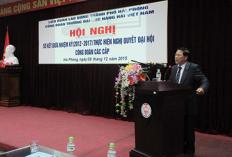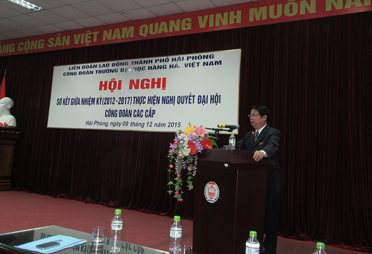 Thực hiện Điều lệ Công đoàn Việt Nam khóa XI, kế hoạch số 64 ngày 19/8/2015 của Liên đoàn Lao động thành phố Hải Phòng về việc sơ kết nửa nhiệm kỳ thực hiện Nghị quyết Đại hội Công đoàn các cấp và chương trình công tác năm học 2015-2016 của Công đoàn Trường ĐH Hàng hải Việt Nam để đánh giá tình hình thực hiện Nghị quyết Đại hội Công đoàn các cấp giai đoạn 2012-2015, bổ sung nhiệm vụ trọng tâm của Công đoàn giai đoạn 2015-2017, 08h00 ngày 09/12/2015 tại phòng Hội thảo số 3, Công đoàn Trường ĐHHHVN tổ chức “Hội nghị sơ kết nửa nhiệm kỳ thực hiện nghị quyết Đại hội Công đoàn các cấp” nhằm chào mừng Đại hội thi đua yêu nước toàn quốc lần thứ IX và hướng tới kỉ niệm 60 năm thành lập Trường Đại học Hàng hải Việt Nam đón nhận danh hiệu Anh hùng lực lượng vũ trang nhân dân.