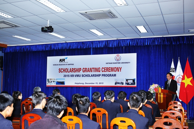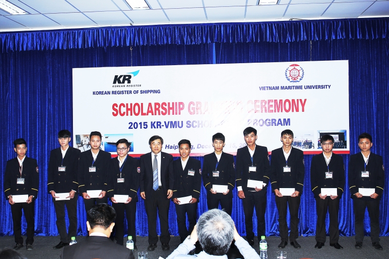 Ngày 15/12/2015, Cơ quan Đăng kiểm Hàn Quốc đã tiến hành trao học bổng KR-VMU 2015 cho 10 sinh viên có thành tích học tập xuất sắc của Trường Đại học Hàng hải Việt Nam (VMU) với trị giá mỗi suất là 300 USD.