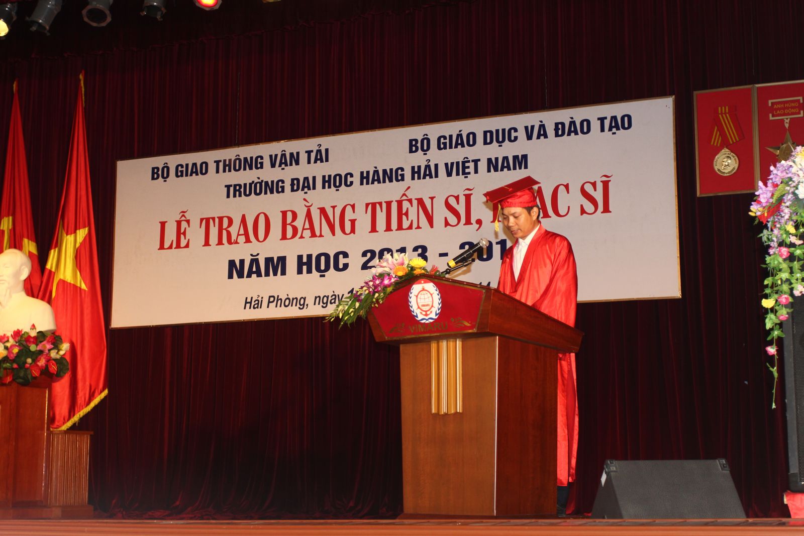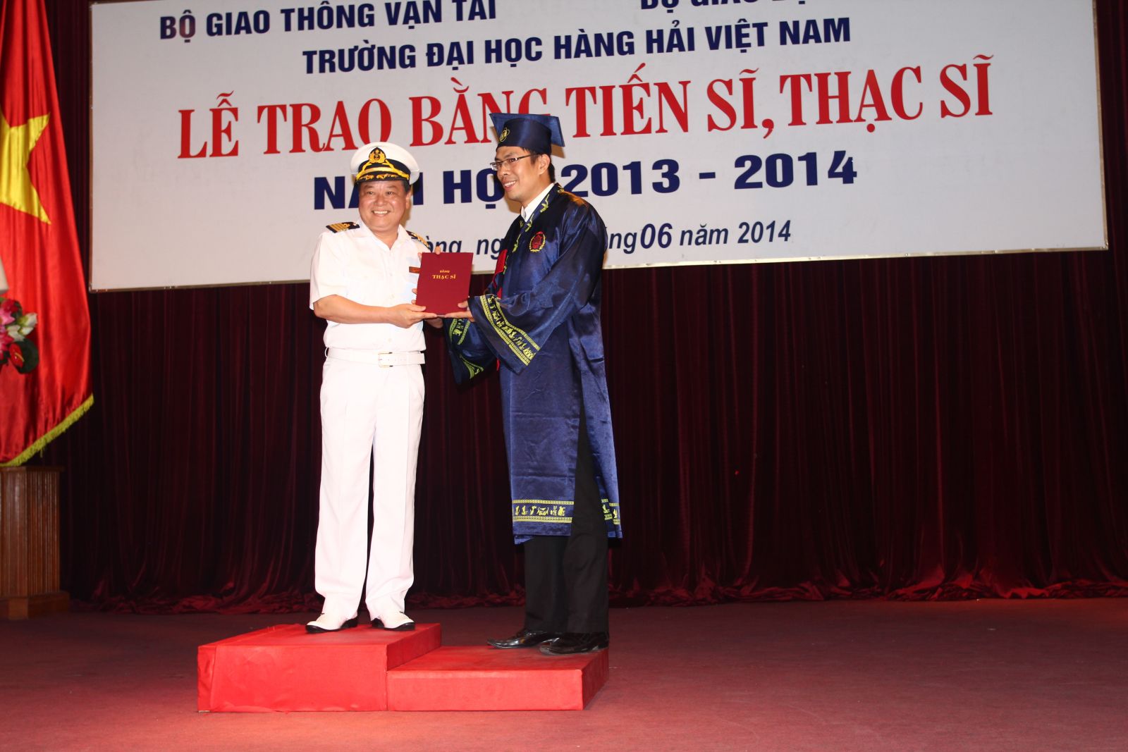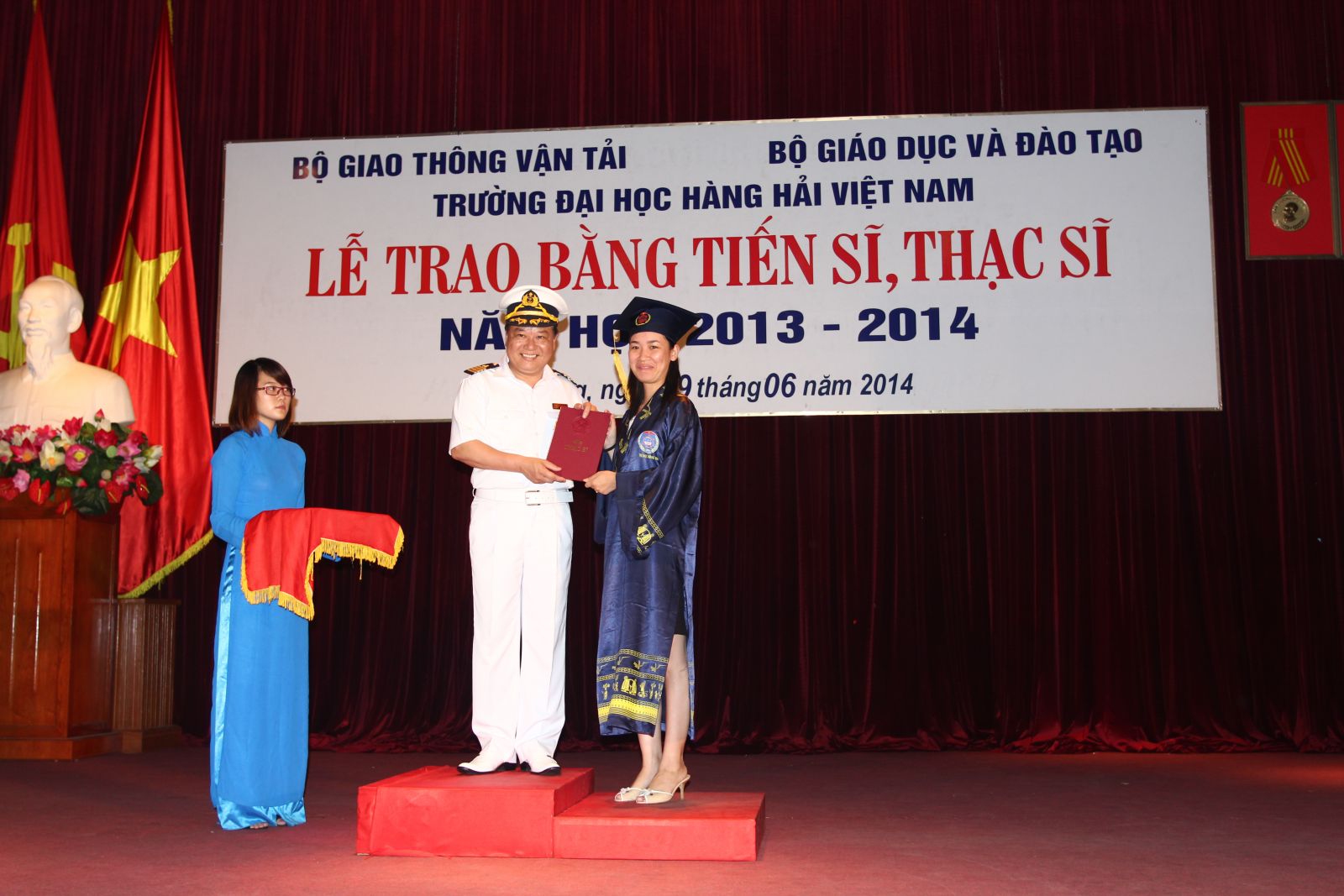Chiều ngày 19/6/2014, tại Hội trường lớn Trường Đại học Hàng hải Việt Nam đã long trọng tổ chức “Lễ trao bằng Tiến sĩ, Thạc sĩ năm 2014” cho 1 tân Tiến sĩ và 207 tân Thạc sĩ. Buổi lễ chính là dịp biểu dương tinh thần cố gắng, nỗ lực học tập của các Nghiên cứu sinh, các học viên Cao học để có thể hoàn thành tốt chương trình đào tạo trong thời gian vừa qua, khẳng định sự phát triển liên tục của Viện Đào tạo Sau đại học tại Trường Đại học Hàng hải Việt Nam.