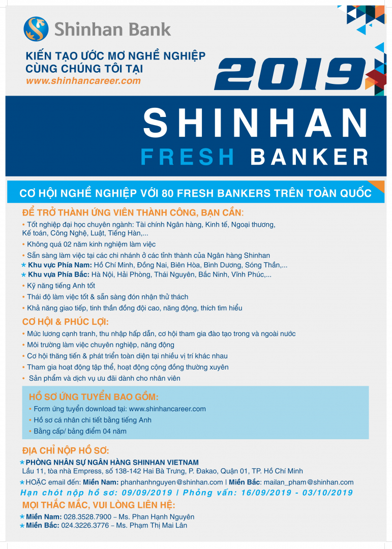 Thông báo tuyển dụng của Ngân hàng Shinhan Việt Nam- FRESH BANKER 2019