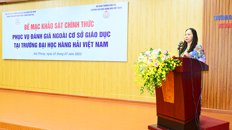 Cũng tại buổi lễ, PGS.TS. Nguyễn Phương Nga - Giám đốc Trung tâm KĐCLGD - Hiệp hội CTĐHCĐVN ghi nhận và đánh giá cao các quy trình, phương pháp đánh giá khoa học, tinh thần làm việc trách nhiệm, khách quan, công tâm của Đoàn Chuyên gia ĐGN trong quá trình nghiên cứu hồ sơ minh chứng, khảo sát sơ bộ và khảo sát chính thức để đưa ra những nhận định, đánh giá và khuyến nghị cải tiến chất lượng đối với Trường ĐHHHVN. PGS.TS. Nguyễn Phương Nga cảm ơn Nhà trường, các khoa, viện, phòng, ban, trung tâm các đơn vị, cá nhân và các bên liên quan đã có sự phối hợp hiệu quả trong việc cung cấp các thông tin, minh chứng góp phần quan trọng cho thành công của đợt khảo sát, đồng thời bày tỏ mong muốn tiếp tục thúc đẩy quan hệ hợp tác hiệu quả giữa Trung tâm và Nhà trường trong lĩnh vực đảm bảo chất lượng, góp phần đưa Trường ĐHHHVN thực hiện tốt chiến lược và tiếp tục gặt hái nhiều thành công trong giai đoạn mới.