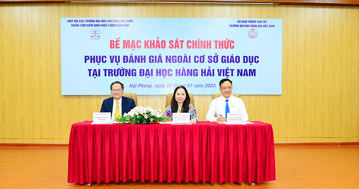 Sau thời gian làm việc khẩn trương, nghiêm túc, trách nhiệm và hiệu quả, Trường Đại học Hàng hải Việt Nam cùng Đoàn chuyên gia đánh giá ngoài và Trung tâm Kiểm định chất lượng giáo dục - Hiệp hội Các trường đại học, cao đẳng Việt Nam đã tổ chức lễ Bế mạc chương trình khảo sát chính thức phục vụ đánh giá ngoài cơ sở giáo dục theo tiêu chuẩn Bộ GD&ĐT.
