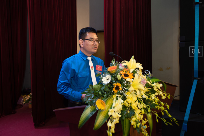 Đồng chí Nguyễn Vương Thịnh - Bí thư ĐTNCS HCM báo cáo tóm tắt công tác Đoàn và phong trào thanh niên nhiệm kỳ 2017 - 2019 và mục tiêu, nhiệm vụ, giải pháp nhiệm kỳ 2019 – 2022