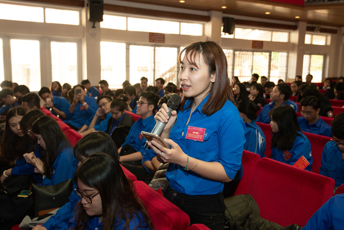 Đồng chí Vương Toàn Thu Thủy – UVBCH Trung ương Đoàn, Phó Bí thư Thành đoàn, Chủ tịch HSV Việt Nam Thành phố Hải Phòng phát biểu tại Hội nghị
