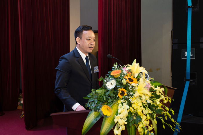 PGS.TS Phạm Xuân Dương - Phó Bí thư phụ trách Đảng ủy, Hiệu trưởng Nhà trường phát biểu tại Hội nghị