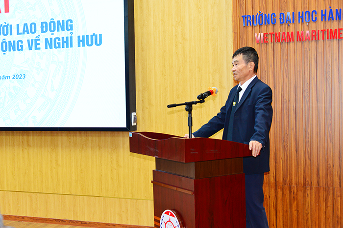Tại buổi gặp mặt, PGS.TS.Phạm Xuân Dương - Hiệu trưởng Nhà trường thay mặt Đảng ủy, Ban Giám Hiệu Trường Đại học Hàng hải Việt Nam bày tỏ lòng kính trọng và biết ơn của toàn thể CB, GV, CNV tới các đồng chí cán bộ đã có thời gian công tác, cống hiến, đóng góp, xây dựng vào sự phát triển chung của Mái trường Đại dương thân yêu này.