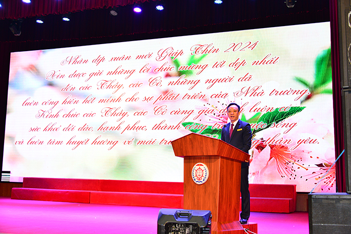 Nhân dịp Xuân mới Giáp Thìn 2024, thay mặt Đảng ủy, Ban Giám hiệu, PGS.TS. Phạm Xuân Dương đã gửi “… những lời chúc mừng tốt đẹp nhất đến các Thầy, các Cô, những người đã luôn cống hiến hết mình cho sự phát triển của Nhà trường…”