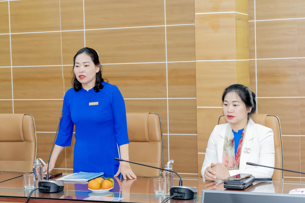 Đồng chí Phạm Thị Xuân - Phó Chủ tịch Công đoàn Trường, Trưởng Ban Nữ công phát biểu tại buổi Gặp mặt