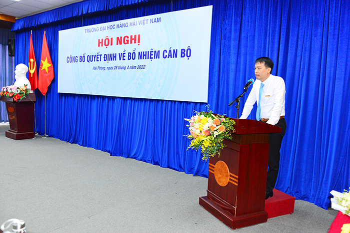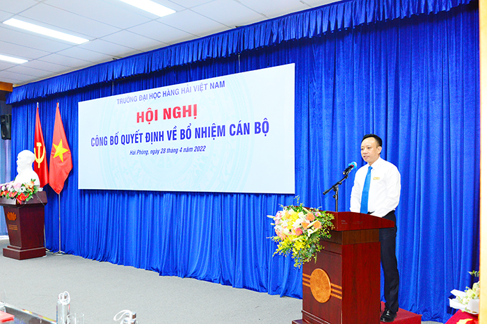 02 đồng chí mới được bổ nhiệm cảm ơn sự tin tưởng của lãnh đạo Trường Đại học Hàng hải Việt Nam đồng thời nhấn mạnh sẽ cố gắng hết mình trên cương vị mới, góp phần xây dựng VMU trở thành một Đại học lớn, có uy tín, hội nhập với khu vực và thế giới.