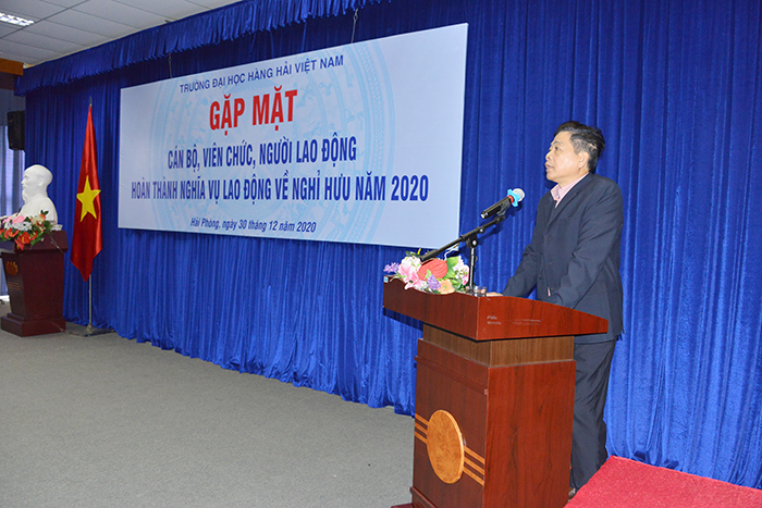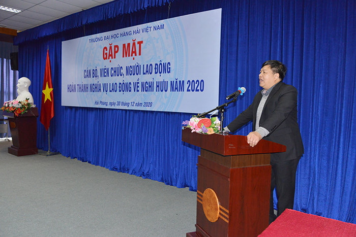 10h ngày 30 tháng 12 năm 2020, Trường Đại học Hàng hải Việt Nam đã tổ chức tiếp xúc thân mật với 16 đồng chí được nghỉ hưu năm 2020 nhằm bày tỏ lòng tri ân tới các đồng chí trong những năm công tác tại Trường đã có những đóng góp cho sự nghiệp giáo dục và đào tạo, góp phần tạo nên vị thế của Nhà trường ở trong nước và quốc tế.