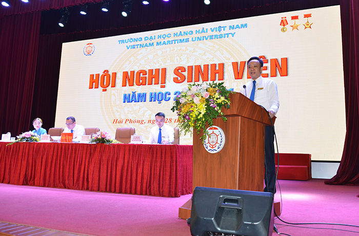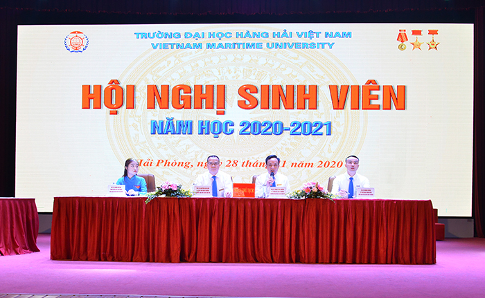 08h00 ngày 28/11/2020, “Hội nghị sinh viên năm học 2020-2021” - Trường Đại học Hàng hải Việt Nam được diễn ra trong không khí sôi nổi, nghiêm túc và chất lượng. PGS.TS Phạm Xuân Dương – Phó Bí thư Đảng ủy, Hiệu trưởng Nhà trường đã trực tiếp chủ trì Hội nghị cùng với sự tham dự của các thầy trong Ban Giám hiệu Nhà trường, Công đoàn, Thủ trưởng các đơn vị, Đoàn TN - Hội SV và gần 400 sinh viên đại diện các khóa từ 58 đến 61.