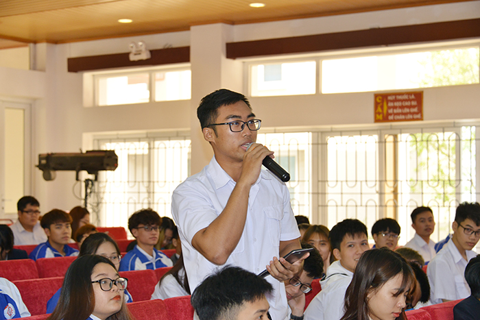 Sinh viên đặt câu hỏi trực tiếp tại Hội trường