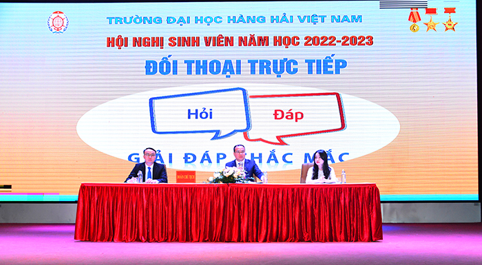 Hội nghị đã tổng kết, đánh giá những hoạt động trong năm học 2021-2022 và đưa ra định hướng nhiệm vụ trọng tâm năm học 2022-2023. Tại Hội nghị, thay mặt Đoàn chủ tịch, Phó Hiệu trưởng Nguyễn Minh Đức đã trực tiếp lắng nghe, giải đáp hàng chục ý kiến thắc mắc, ghi nhận rất nhiều góp ý, đề xuất từ phía sinh viên Nhà trường về tất cả các mặt công tác: giảng dạy và học tập, rèn luyện, nghiên cứu khoa học, cơ sở vật chất phục vụ giảng dạy, học tập, các dịch vụ trong trường dành cho sinh viên, các hoạt động ngoại khoá, các chương trình học bổng, quan hệ giữa Nhà trường và doanh nghiệp để tạo cơ hội thực tập, thực hành, cơ hội việc làm của sinh viên sau tốt nghiệp; tinh thần, thái độ phục vụ sinh viên của một số đơn vị, phòng ban chức năng; công tác bảo đảm an ninh, an toàn cho sinh viên trong trường... Phần đối thoại trực tiếp giữa lãnh đạo Nhà trường với sinh viên tại Hội nghị đã diễn ra trong không khí hết sức chân thành, cởi mở, thẳng thắn, xây dựng.