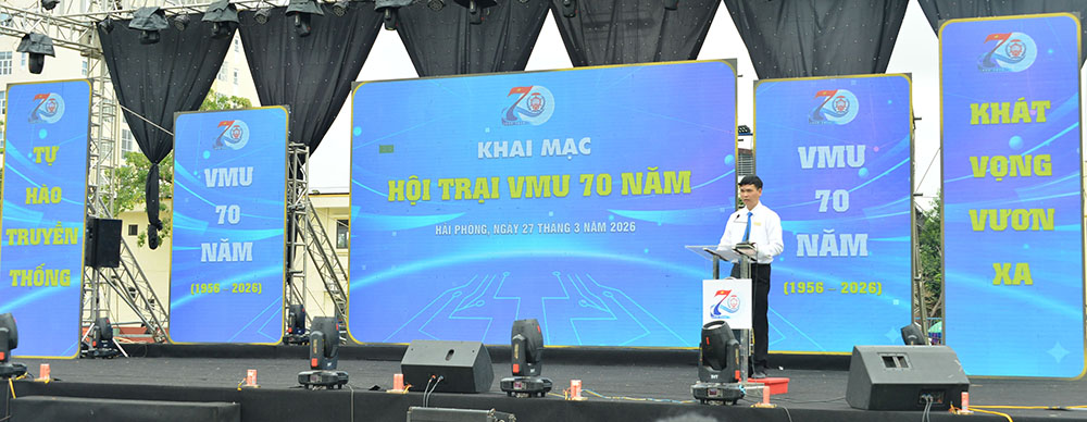 Trong không khí sôi nổi, phấn khởi hướng tới kỷ niệm 70 năm ngày thành lập Trường (01/4/1956 - 01/4/2026), ngày 27/3/2026, Trường Đại học Hàng hải Việt Nam đã tổ chức Khai mạc Hội trại với chủ đề “VMU 70 năm: Tự hào truyền thống - Khát vọng vươn xa”, thu hút đông đảo sự tham gia của cán bộ, giảng viên, người lao động và sinh viên, học viên toàn Trường.