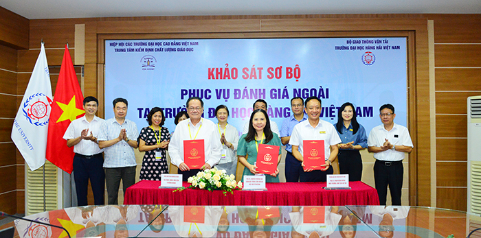 Kết thúc ngày khảo sát sơ bộ, Giám đốc Trung tâm Kiểm định chất lượng giáo dục - Hiệp hội Các trường đại học, cao đẳng Việt Nam, Trưởng Đoàn chuyên gia đánh giá ngoài và Hiệu trưởng Trường Đại học Hàng hải Việt Nam đã cùng ký Biên bản Ghi nhớ sau khảo sát sơ bộ.