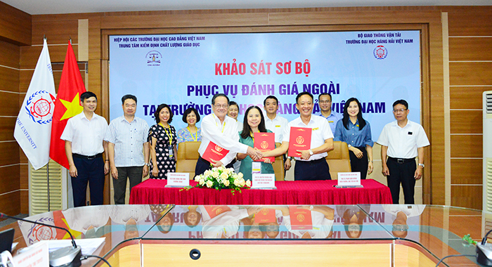 Ngày 07/7/2023, Đoàn chuyên gia đánh giá ngoài do Trung tâm Kiểm định chất lượng giáo dục - Hiệp hội Các trường đại học, cao đẳng Việt Nam thành lập đã tiến hành khảo sát sơ bộ phục vụ đánh giá ngoài cơ sở giáo dục tại Trường Đại học Hàng hải Việt Nam để chuẩn bị cho đợt khảo sát chính thức theo quy trình kiểm định chất lượng giáo dục của Bộ Giáo dục và Đào tạo.