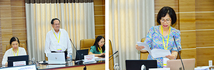 GS.TSKH. Đặng Ứng Vận - Trưởng đoàn đánh giá ngoài cùng TS. Nguyễn Thị Tuyết - Thư ký Đoàn đánh giá ngoài nêu một số đóng góp trong việc cung cấp các minh chứng trong đợt khảo sát chính thức