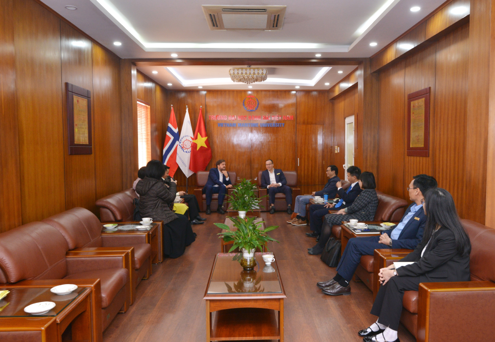 Phó Hiệu trưởng Trường Đại học Hàng hải Việt Nam đón tiếp Đại sứ quán Na Uy tại Hà Nội và UNDP Việt Nam tại Phòng khách Nhà trường