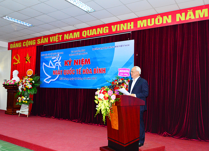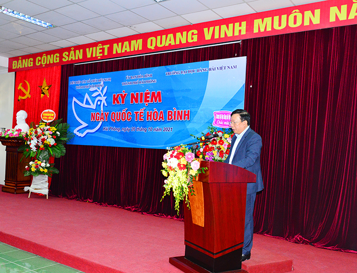 Sáng 26/10, Liên hiệp các tổ chức hữu nghị thành phố Hải Phòng, Ủy ban Hòa bình thành phố Hải Phòng và Trường Đại học Hàng hải Việt Nam cùng phối hợp tổ chức kỷ niệm Ngày Quốc tế hòa bình năm 2021 nhằm truyền tải thông điệp bảo vệ, giữ gìn hòa bình, xây dựng và bảo vệ Tổ quốc trước những thách thức lớn của đại dịch Covid-19 và những nỗ lực hoàn thành nhiệm vụ năm 2021, đóng góp tích cực vào phát triển kinh tế-xã hội Thành phố.