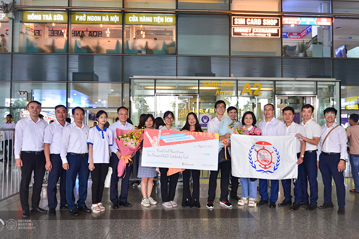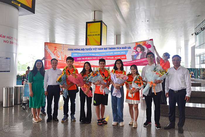 Lễ đón đội tuyển Việt Nam và sinh viên Trường Đại học Hàng hải Việt Nam tham dự Cuộc thi Vô địch tin học văn phòng thế giới 2023