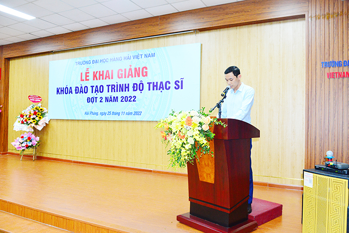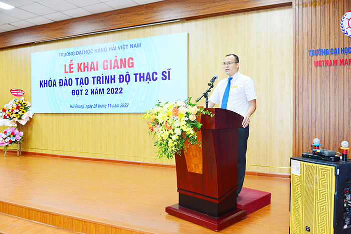 Phát biểu tại Lễ Khai giảng, PGS.TS Nguyễn Minh Đức - Phó Hiệu trưởng Nhà trường gửi lời chúc mừng đến 157 các bạn học viên cao học đã trúng tuyển. Thầy cũng chúc mừng các bạn vì đã sáng suốt lựa chọn Trường Đại học Hàng hải Việt Nam là điểm bắt đầu để khám phá một chân trời tri thức mới, vươn tới những học vị cao hơn.