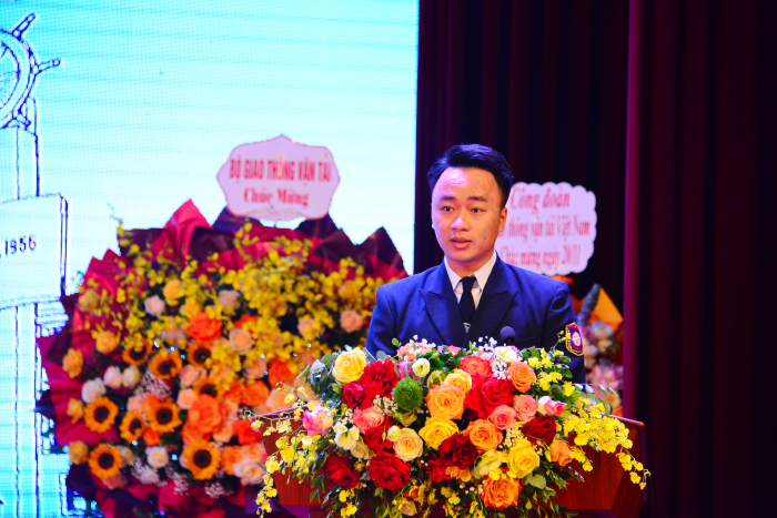 Sinh viên Ngô Vương Quốc - Lớp QKC62ĐH, ngành Quản lý kỹ thuật công nghiệp, Khoa Máy tàu biển đại diện cho sinh viên, học viên toàn Trường lên phát biểu những suy nghĩ, những tình cảm tri ân các Thầy/Cô giáo nhân Ngày Nhà giáo Việt Nam 20/11