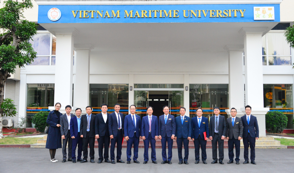 Chụp ảnh lưu niệm tại Trường Đại học Hàng hải Việt Nam nhân dịp trao Biên bản hợp tác