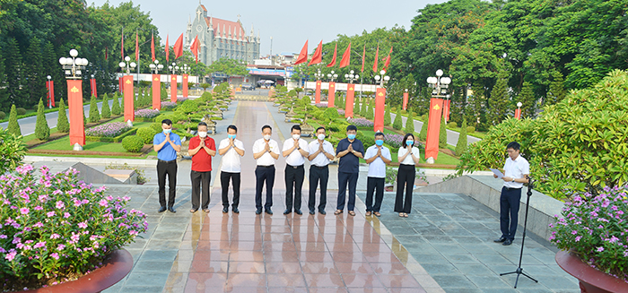 Tham dự lễ viếng có các đồng chí: PGS.TS Nguyễn Khắc Khiêm – Bí thư Đảng ủy, Chủ tịch Hội đồng Trường; PGS. TS Phạm Xuân Dương – Phó Bí thư Đảng ủy, Hiệu trưởng Nhà trường cùng các đồng chí trong BGH, Công đoàn, Đoàn Thanh niên của Nhà trường và 04 thành viên Câu lạc bộ 27/7 đã đến đặt vòng hoa, làm lễ, dâng hương tại Đài tưởng niệm anh hùng, liệt sỹ Thành phố.