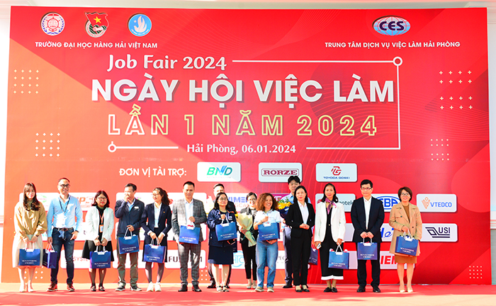 Ngày hội việc làm lần 1 năm 2024 được tổ chức với quy mô lớn với sự tham gia của 28 doanh nghiệp có uy tín như Công ty TNHH Phát triển Giáo dục và Đào tạo Việt Nam (Vtedco), Công ty TNHH Sao Vàng, Công ty TNHH Chế tạo máy EBA, Công ty Cổ phần Nhựa Thiếu niên Tiền Phong, Công ty TNHH Toyoda Gosei Hải Phòng, Công ty TNHH Đóng Tàu Damen - Sông Cấm, Công ty TNHH LG Innotek Việt Nam Hải Phòng, Công ty TNHH Pegatron Việt Nam,…với trên 2.500 cơ hội việc làm ở nhiều ngành nghề kinh tế, công nghệ thông tin, truyền thông, điện, cơ khí, xây dựng, đóng tàu, …