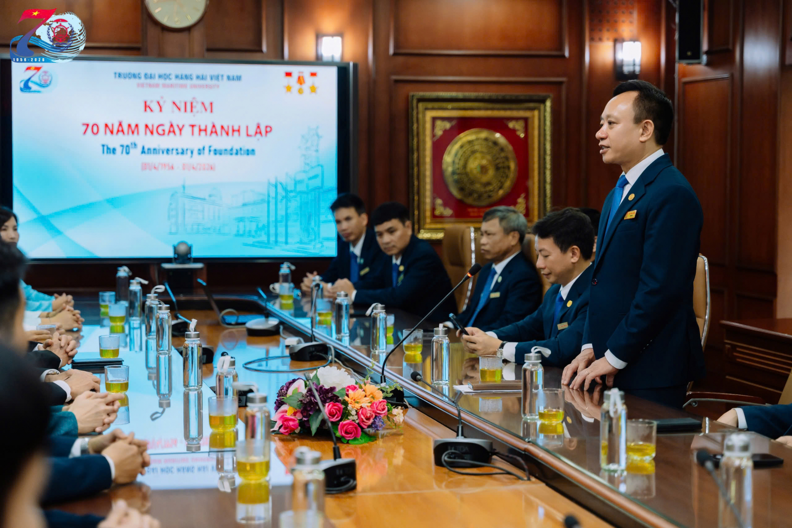 Tại buổi làm việc, NGƯT.TS. Lê Văn Vang - Phó Hiệu trưởng Trường Đại học Giao thông vận tải thành phố Hồ Chí Minh đã gửi lời chúc mừng nồng nhiệt tới tập thể lãnh đạo, cán bộ, giảng viên và sinh viên, học viên Trường Đại học Hàng hải Việt Nam nhân dịp kỷ niệm 70 năm thành lập Trường. Thầy bày tỏ ấn tượng trước những thành tựu nổi bật mà Nhà trường đã đạt được trong suốt chặng đường xây dựng và phát triển, đặc biệt là vai trò tiên phong trong đào tạo nguồn nhân lực chất lượng cao cho ngành hàng hải và kinh tế biển Việt Nam.