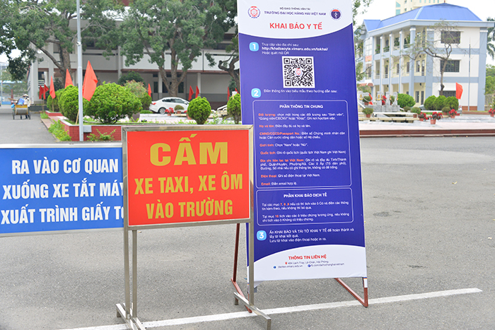 Để đảm bảo công tác phòng chống dịch đạt hiệu quả, ngay trong những ngày trước khi đón sinh viên quay trở lại học tập, Nhà trường đã tổ chức cho toàn thể CB, GV, CNV, NLĐ, học viên, sinh viên khai báo y tế qua hai hình thức: khai báo trực tiếp trên tờ khai hoặc khai báo trên tờ khai điện tử của Trường (http://khaibaoyte.vimaru.edu.vn/2020); thường xuyên tuyên truyền các nội dung về công tác phòng chống dịch, thực hiện nghiêm các biện pháp 5K của Bộ Y tế; bố trí bộ phận thường xuyên theo dõi, kiểm tra sức khỏe, đo thân nhiệt,….