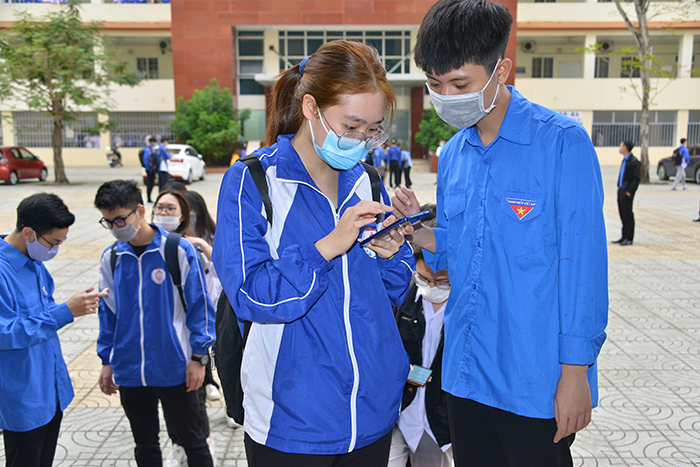 Một số sinh viên cũng được hướng dẫn khai báo y tế điện tử.